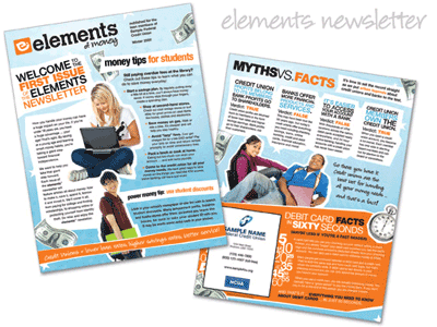 The Elements of Money quarterly newsletter is filled with topical articles that your young members will enjoy to read. Each issue is designed to appeal to the youth market, boost financial literacy and raise credit union awareness.